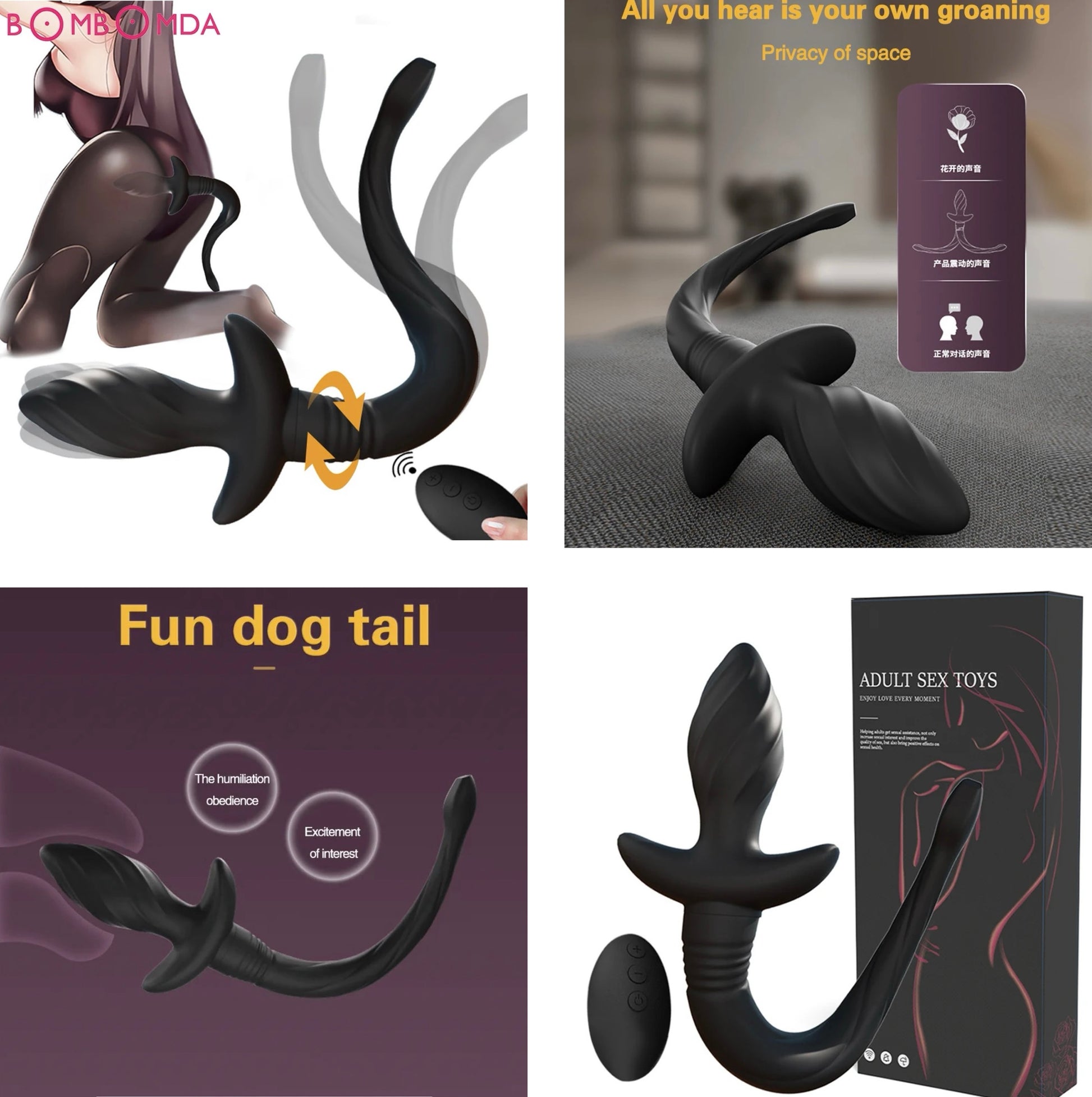 פלאג ויברטור זנב כלב 🐕 משעשע ורוטט עם שלט רחוק למשחקי סקס מדליקים ושווים 🔥🍫