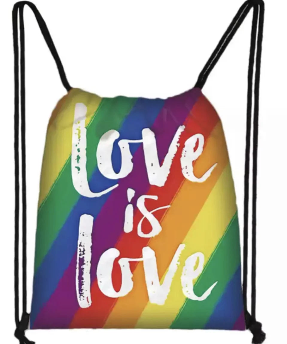תיק בצבעים צבעוניים עם הכיתוב "אהבה זו אהבה" באנגלית